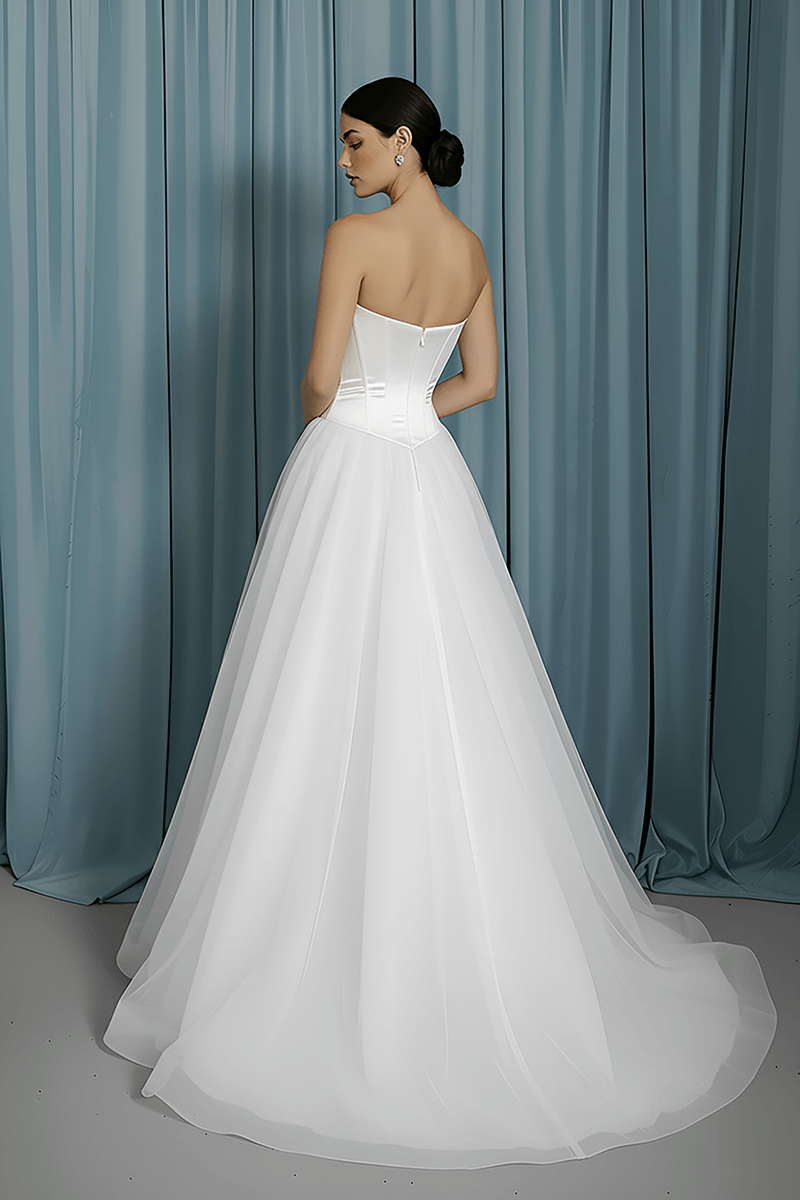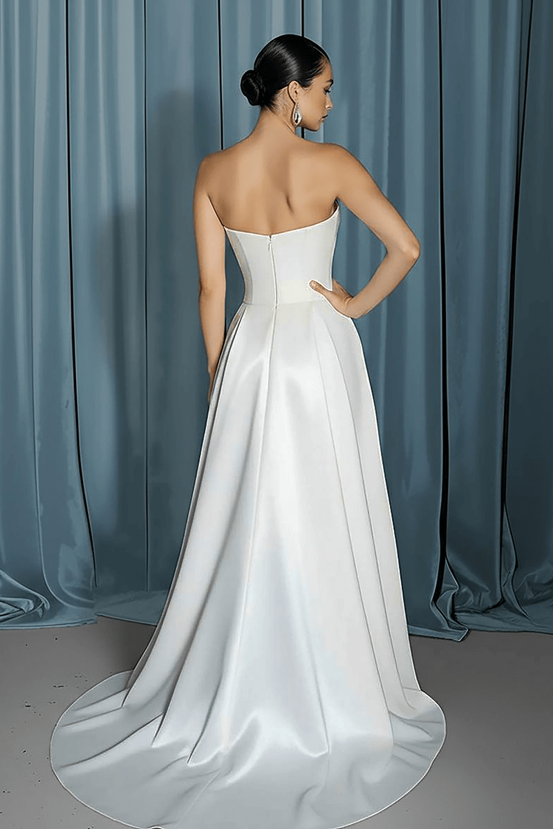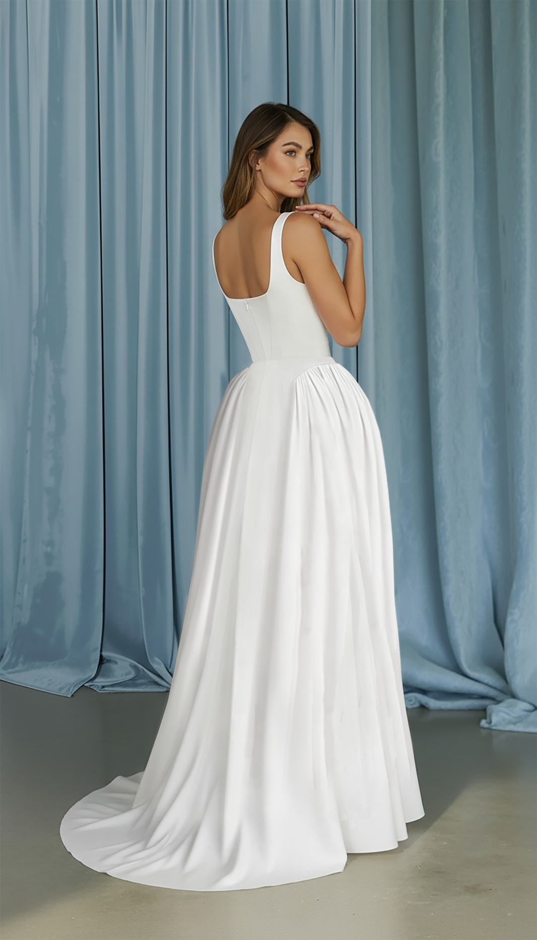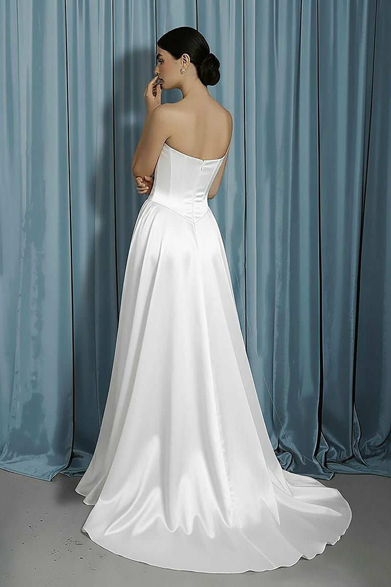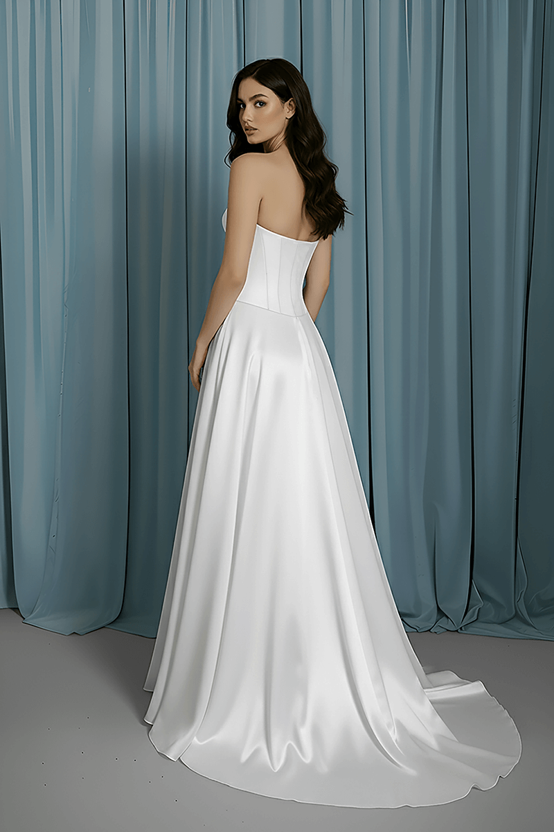 Matt Silk / Heavy Satin Matt Silk / Organza Heavy Satin / Heavy Satin Heavy Satin / Organza Jacquard Floral / Heavy Satin Jacquard Floral / Organza Jacquard Crinkle / Organza Floral Lace / Organza Printed Silk / OrganzaScooped Bustier + A-Line With Slit -Regular price From $3,300.00Regular priceUnit price / per