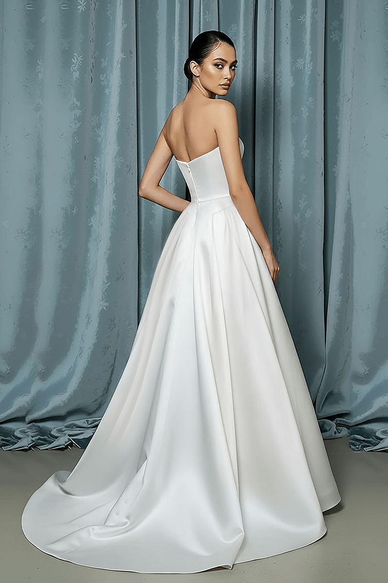 Shinny Charmeuse / Heavy Satin Matt Silk / Heavy Satin Heavy Satin / Heavy SatinBalconette Bustier + Full A-line -Prix habituel $3,100.00Prix habituelPrix unitaire / parPrix habituel $3,100.00Prix habituelPrix unitaire / par