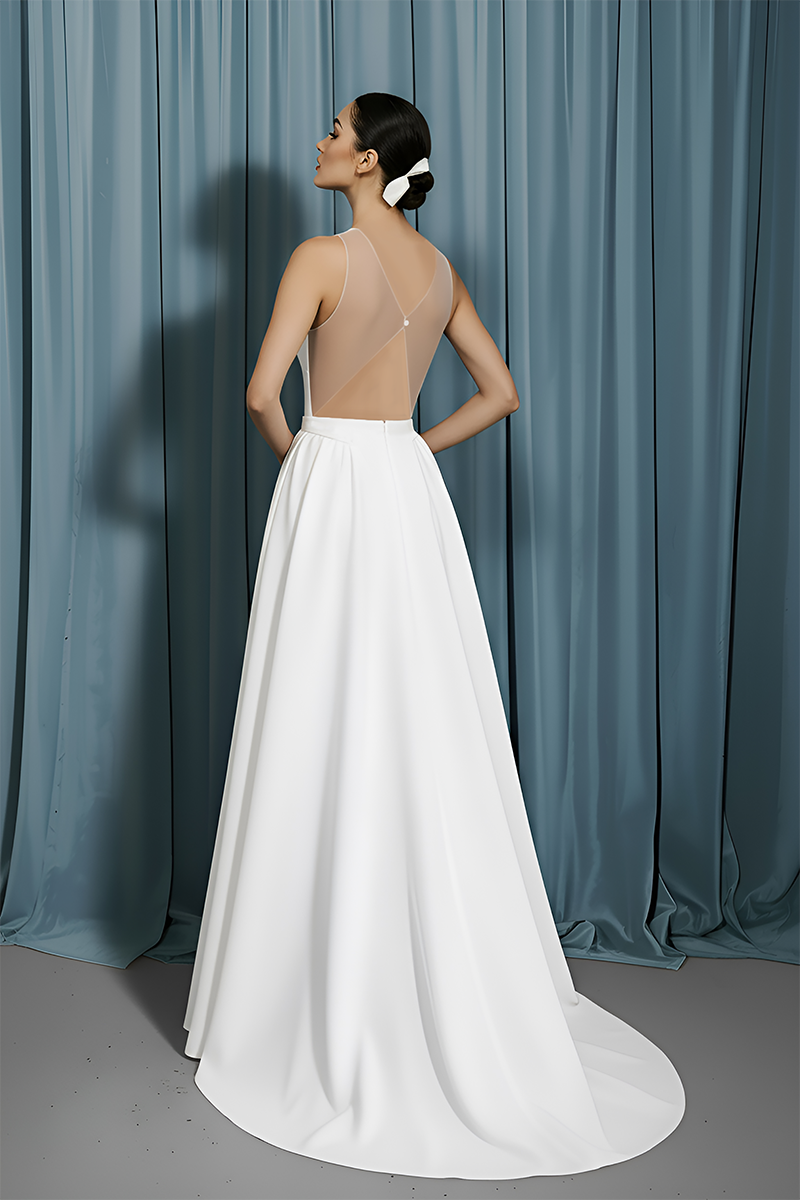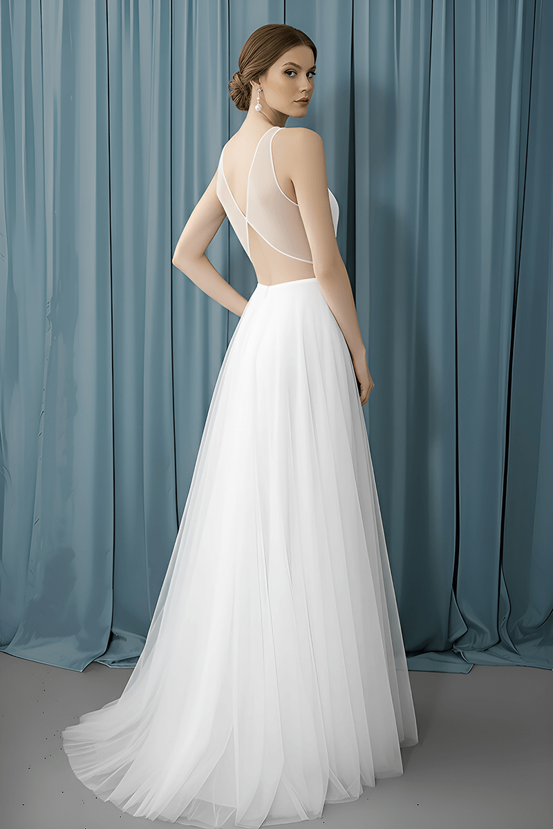 Shinny Charmeuse / Tulle - Ivory Matt Silk / Tulle - Ivory Printed Silk / Tulle - IvoryCrew Neck Boat + Tull A-line -Prix habituel Du $3,500.00Prix habituelPrix unitaire / parPrix habituel Du $3,500.00Prix habituelPrix unitaire / par