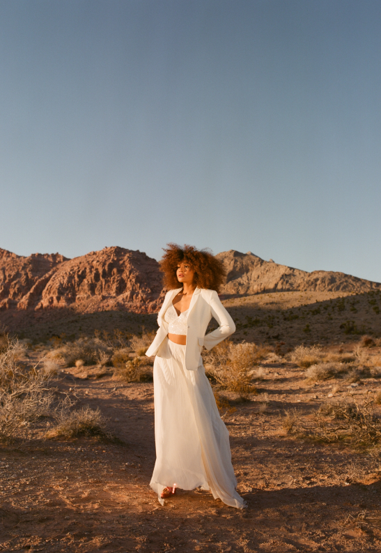 Tailored for the free spirits, our collection embraces the untamed essence of those who dare to be bold. The Beyond The Aisle collection, is thoughtfully designed to celebrate those intimate moments surrounding your grand occasion. From shimmery jumpsuits to bow-tied mini dresses and edgy blazers, we invite you to rise under the moonlight and embark on a journey of unbridled looks.